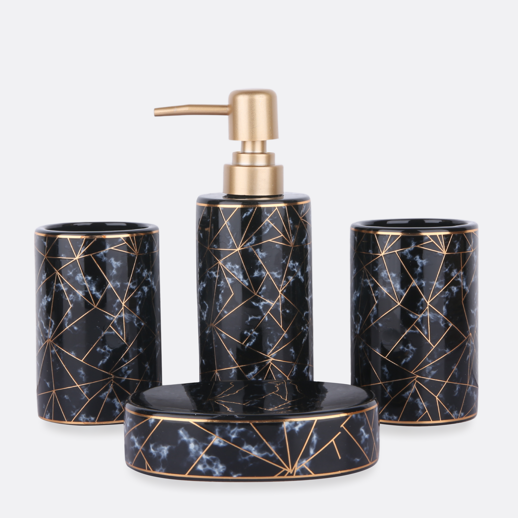 (Optional: tray, toilet brush holder, or storage jar in extended sets)